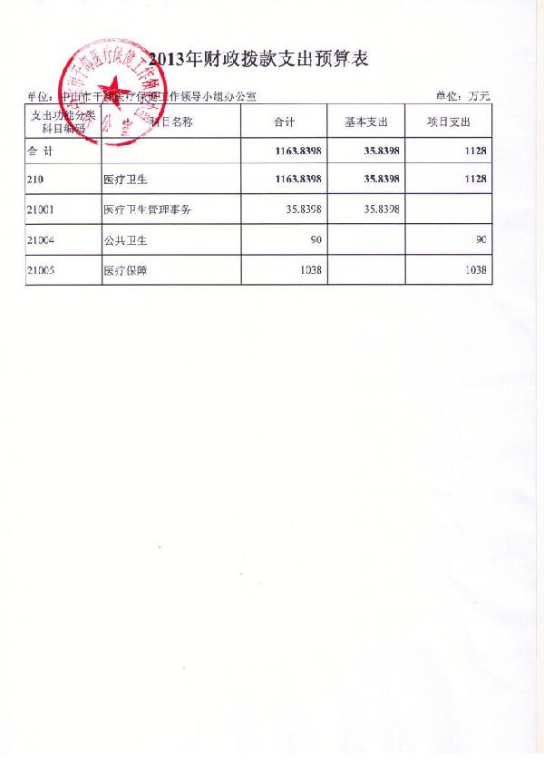 中山市干部医疗保健工作领导小组办公室2013年部门预算情况