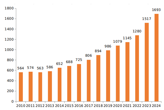 2024年,全市公立医院次均门诊费用、次均住院费用分别为304.2元、10391.3元,分别较上年上涨2.5%、下降5.7%。