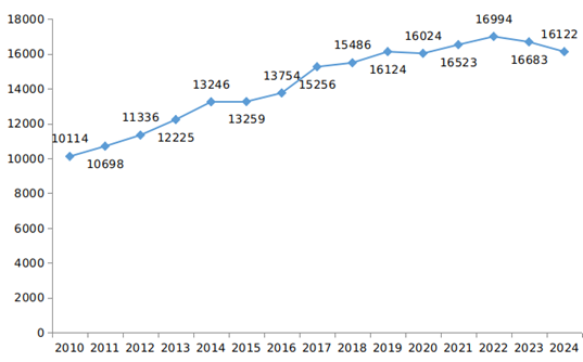 截至2024年底,全市医疗卫生机构在岗职工总数36800人,其中:卫生技术人员32743人,与上年相比,分别增加746人、888人。全市卫生技术人员中,执业(助理)医师12890人,注册护士15652人,医护比1:1.2。